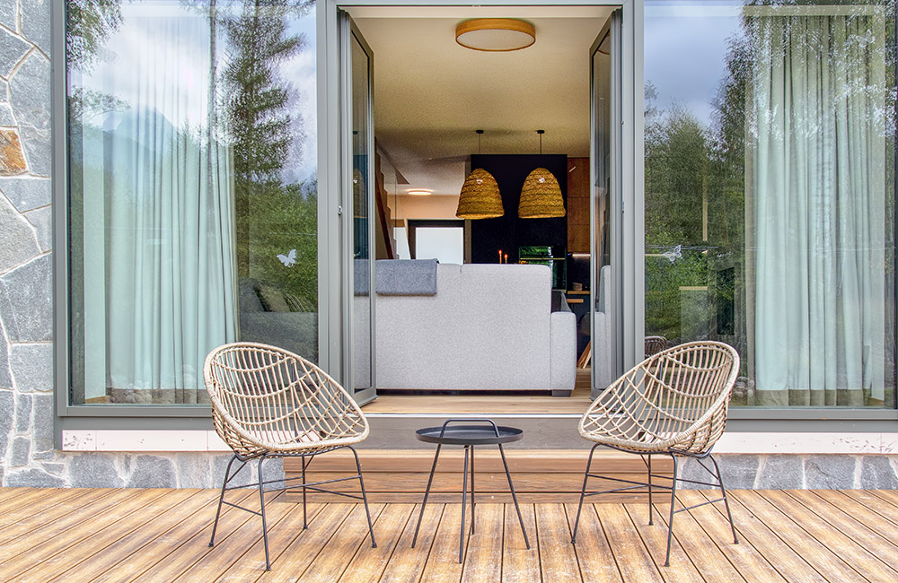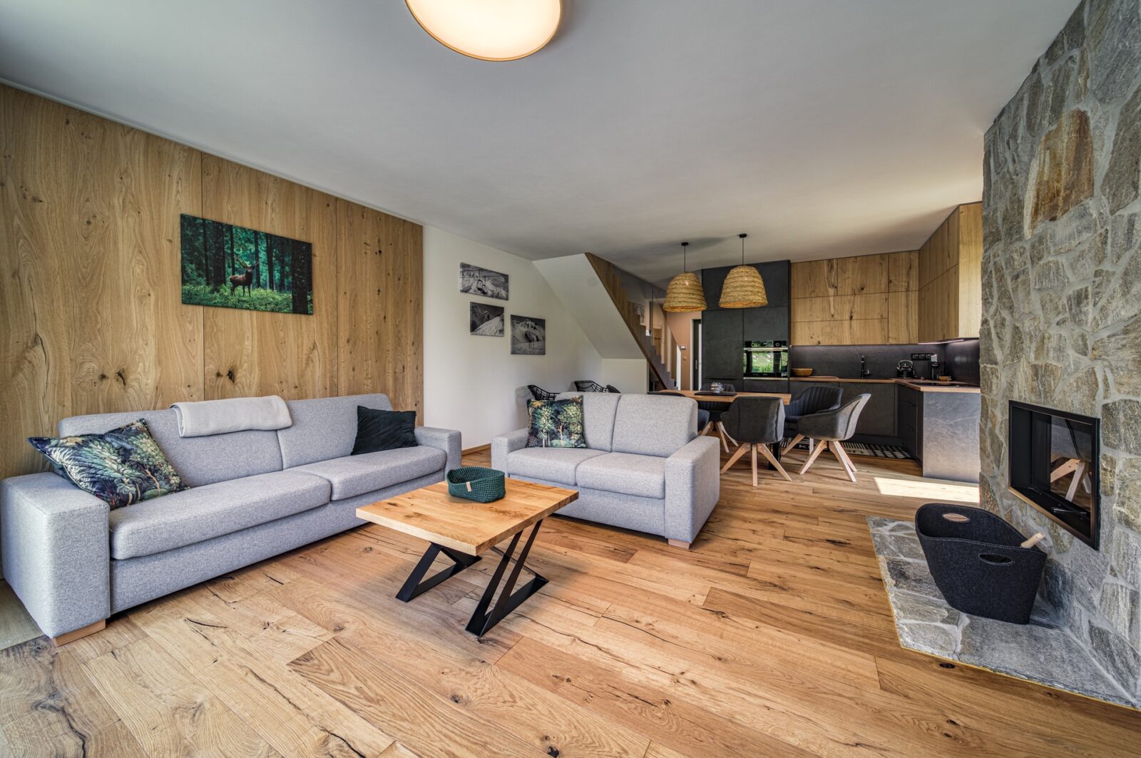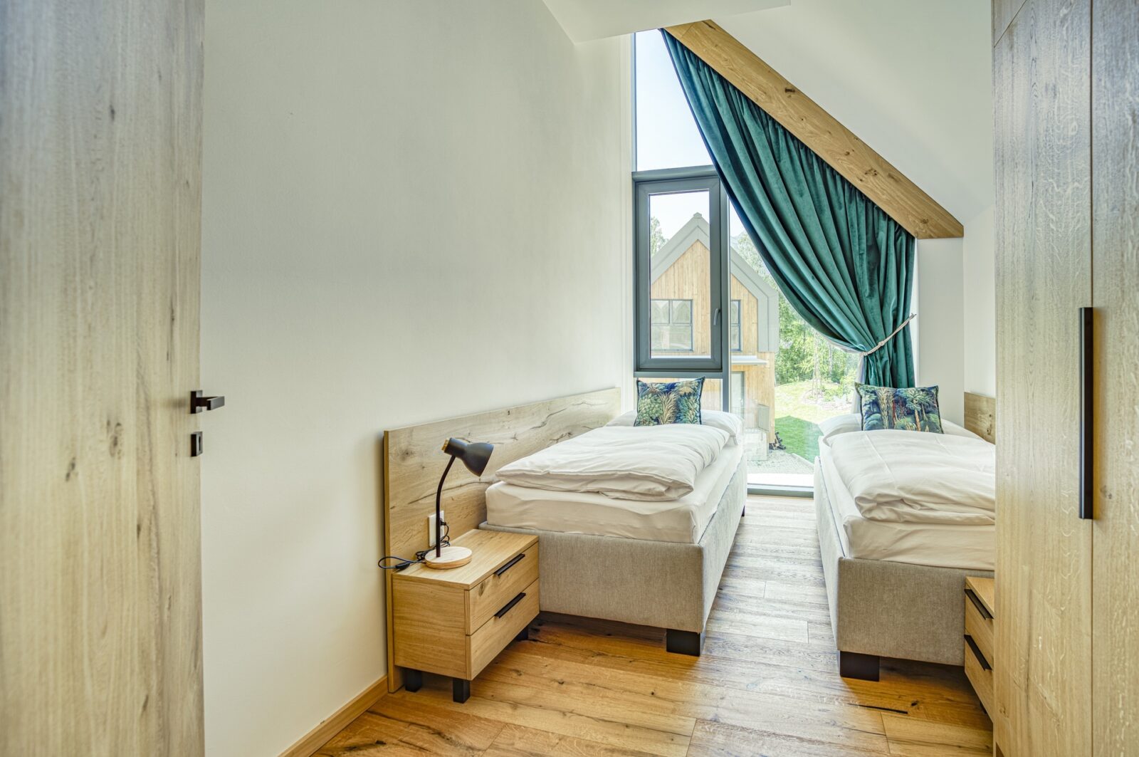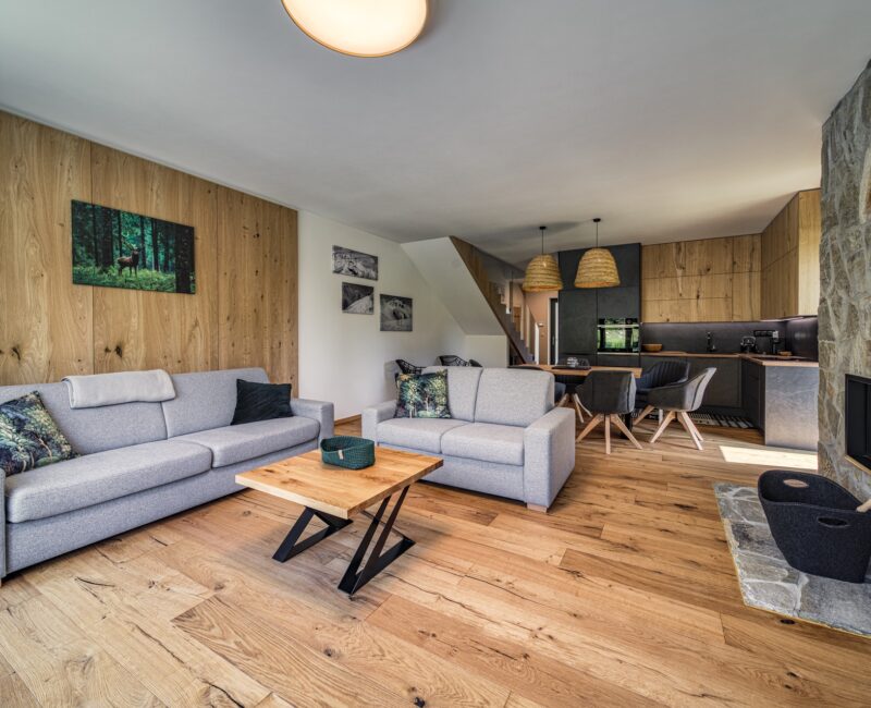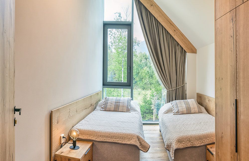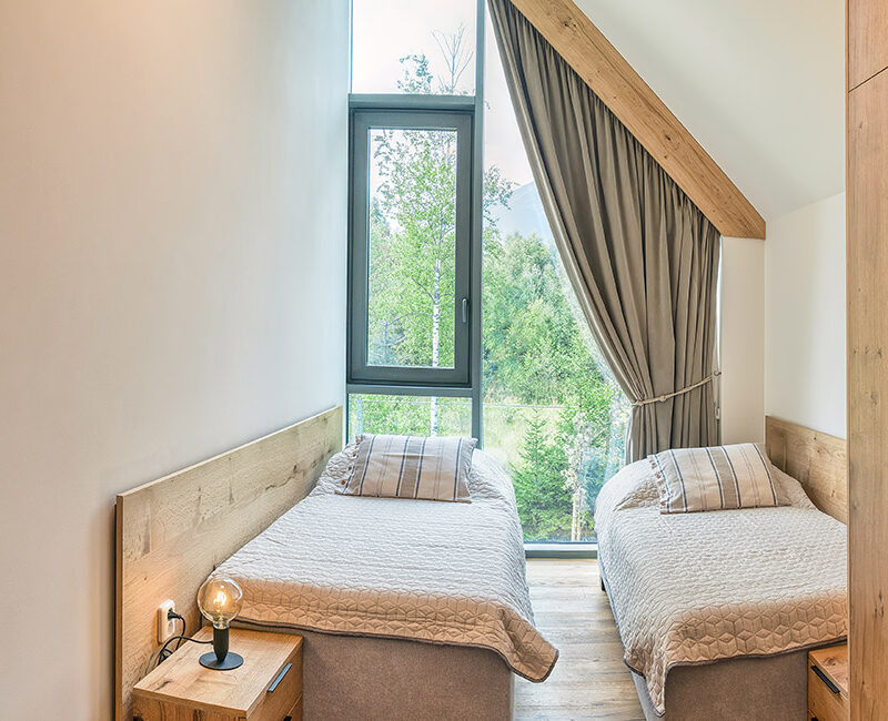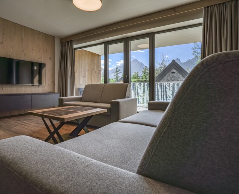 Mezonetové apartmány sa nachádzajú v brezovom háji, ktorý sú súčasťou areálu a rezortu hotela Horizont Resort, ktoré sú ideálne pre skupiny priateľov, početné rodiny alebo kolektívy. Tieto apartmány s modernou architektúrou a atraktívnou polohou ponúkajú komfortné ubytovanie pre 6 až 8 osôb. Na prízemí sa nachádza obývacia miestnosť s TV, krbom a jedálenským stolom, prepojená s plne vybavenou kuchyňou s rúrou, keramickou varnou doskou, chladničkou, varnou kanvicou a umývačkou riadu. Z obývacej miestnosti je východ na balkón s výhľadom na okolitú prírodu. Na poschodí sú tri oddelené a moderne zariadené spálne: jedna s manželskou posteľou a možnosťou pridania detskej postieľky a dve s oddelenými lôžkami a francúzskymi oknami. Apartmány sú vybavené aj technickou miestnosťou s práčovňou, šatníkom a skladom. V celom objekte je dostupné bezplatné Wi-Fi pripojenie na internet. K dispozícii je lyžiareň s ozónovým sušením v hlavnej budove hotela, bezplatné súkromné parkovisko, areál s detským ihriskom a jazierkom.