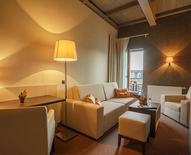 Dvojpodlažné podkrovné izby sú ideálnou voľbou pre rodiny s deťmi. Spájajú moderný dizajn s elegantnou rafinovanosťou a poskytujú nadštandardné služby pre maximálne pohodlie hostí. K dispozícii je 8 izieb typu Superior o veľkosti od 39,28 m², každá s oddelenou spálňou a obývacím priestorom. Izby sú priestranné a vybavené manželskou posteľou a rozkladacou pohovkou, čo zaisťuje pohodlie pre celú rodinu. Vybrané izby majú dve kúpeľne a všetky disponujú terasou s prístupom do hotelového areálu.