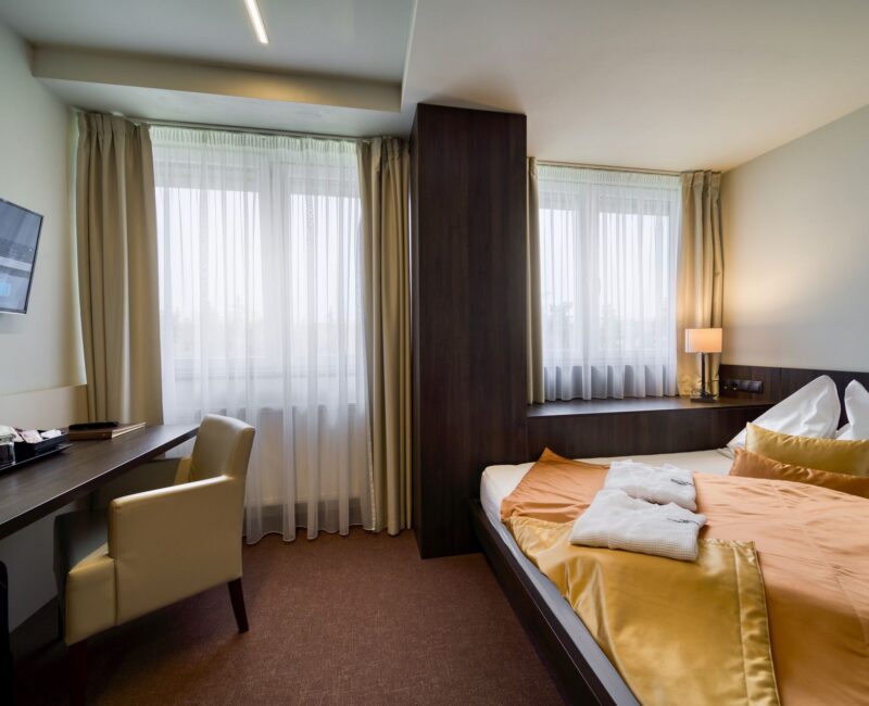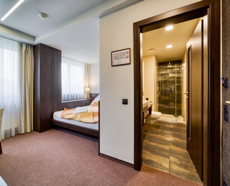 Ponúkame 9 dvojlôžkových alebo jednolôžkových izieb BASIC s manželskou posteľou a rozlohou 14 m², ideálnych pre 1 až 2 osoby. Na týchto izbách nie je možné umiestniť prístelku ani postieľku.