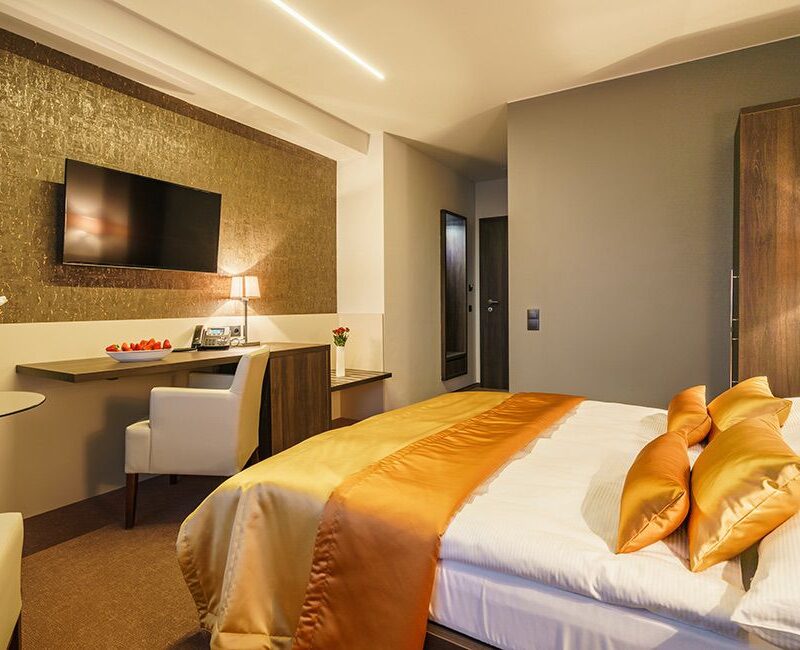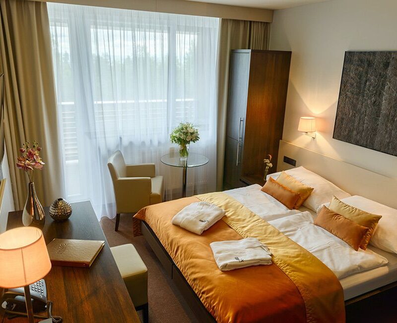 Ponúkame 37 dvojlôžkových alebo jednolôžkových izieb Standard s manželskou alebo oddelenou posteľou a rozlohou od 21 m², ideálnych pre 2 osoby.
