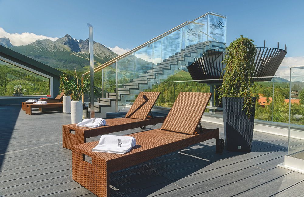 Zabudnite na nesplnené sny a nájdite malý kúsok neba v našej výnimočnej VIP Sky Lounge. Čaká na vás luxusná dokonalá romantika! Takto by sme mohli charakterizovať úžasnú privátnu zónu priamo na streche hotela HORIZONT Resort . Relax, pokoj, oddych a úžasný panoramatický výhľad na štíty Vysokých Tatier si môžete dopriať z vírviky pod hviezdnym nebom. V tejto privátnej zóne je pre vás k dispozícii jacuzzi, samostatná presklená fínska sauna pre 5 osôb, mini kuchynka, kde vám vieme pripraviť ponuku, nápojov a terasa s lehátkami na sledovanie nočnej oblohy. V živote je len pár nezabudnuteľných a neopakovateľných zážitkov.